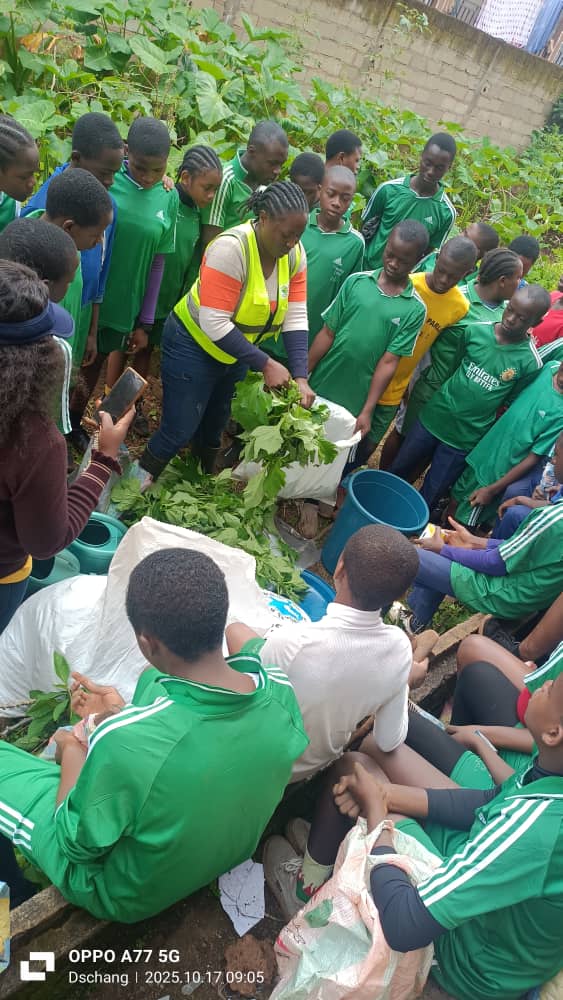 Avec la mise en place d’un Jardin écologique, Le GADD initie les élèves du Lycée Classique de Dschang dans des pratiques de l’agriculture biologique. Certains élèves du Lycée Classique de Dschang ont participé à une formation sur la production du compost accéléré (compost de 21 jours) et sur la préparation des parcelles de cultures qui seront fertilisées avec ce compost. Une belle expérience d’apprentissage et d’action écologique, pour promouvoir l’agriculture durable dès le milieu scolaire.
